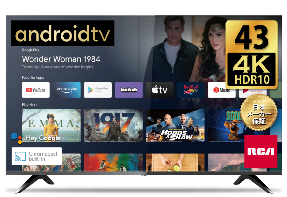 電気メーカーの最古参ともいえるRCAの最先端・高品質チューナーレステレビをぜひ一度ご体験ください。